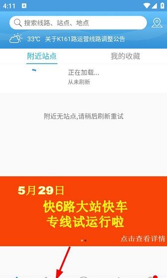 3、用户在首页点击上方的搜索框,输入线路、站点、目的地即可搜索。