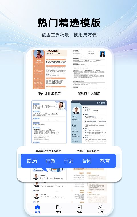 1、丰富多样的模板:内置100多个简历、报告、计划、通知等专业模板,只需点击一下即可快速创建内容。