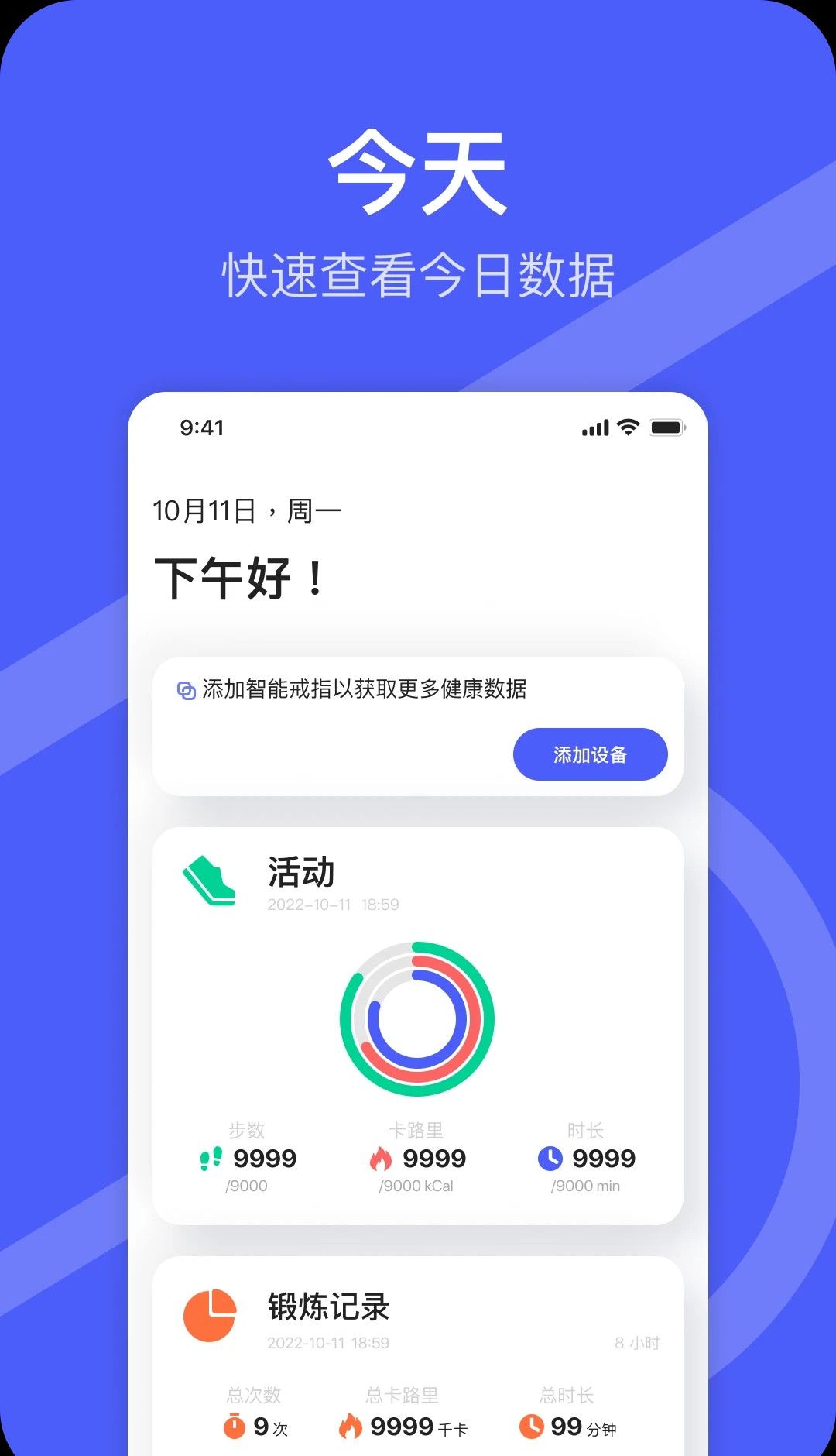 Da Rings是一款受欢迎的免费智能设备管理软件,可以让用户轻松添加身体数据信息,随时呈现相关的资料,包括体脂率,运动时长,健康分析等,能完全满足所有使用需求,还具有全面的功能和选项,无需任何经验即可上手使用,轻松让用户自由管理智能设备,随时随地了解查询详细的数据信息,给用户带来全面的服务,还提供简洁的界面设计,可以自动记录锻炼情况并制定安全科学的运动锻炼计划和方式,有需求的用户欢迎下载。
