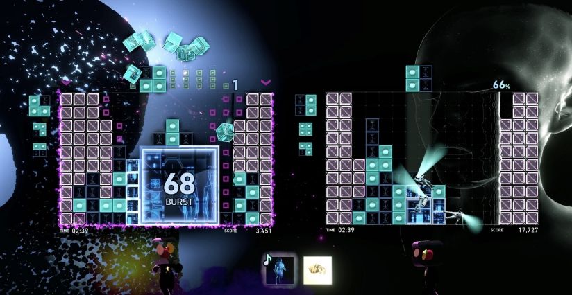 触发全新的“Burst”机制来阻止匹配好的正方形被清除,在时间耗尽之前把它堆砌得尽可能大。当时间线重新开始清扫时,你就可以享受满屏连锁清除、分数飙升不停的视觉盛宴。