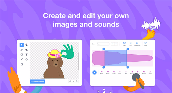 2、创意无限:支持制作动画、游戏、互动故事等多样化项目。