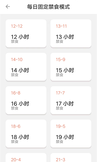 3、【每日禁食模式】是根据自身情况来设定每日在固定的时间不摄入任何食物,【每日禁食】页面显示如下: