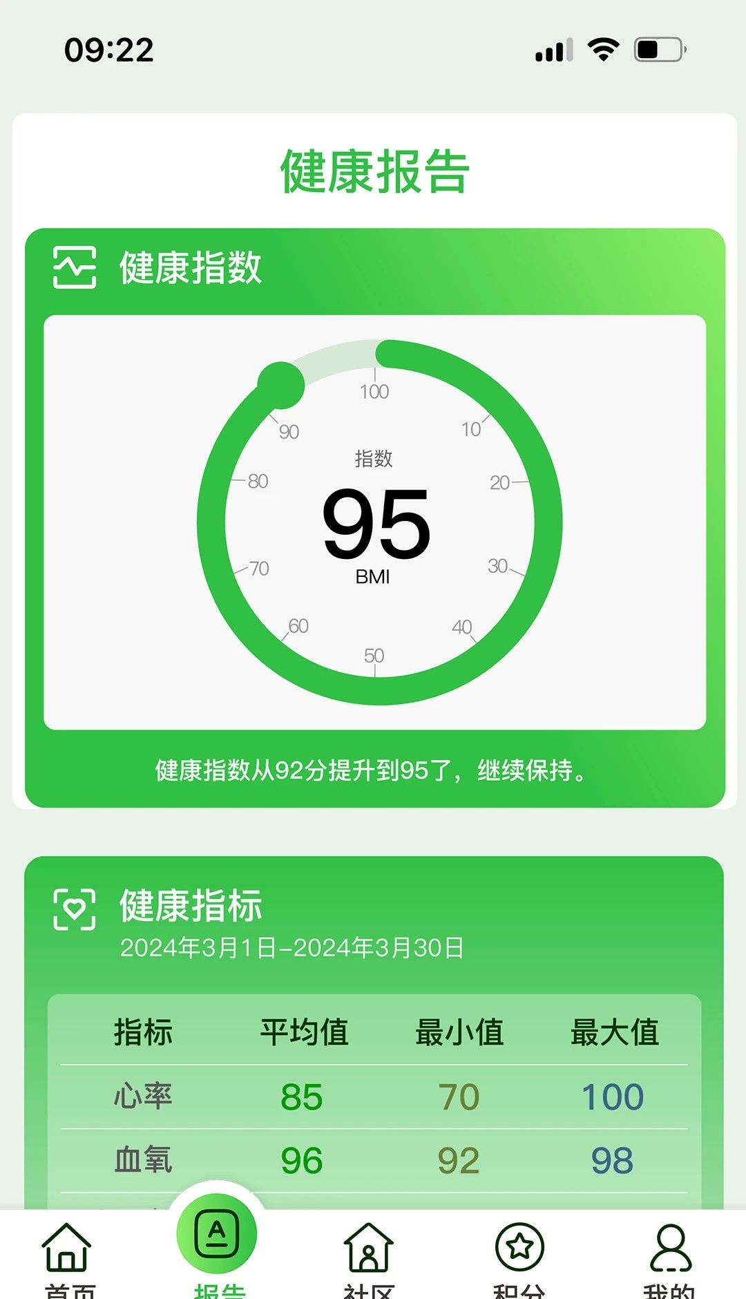 2、健康数据仪表板:整合智能设备监测的血压、心率、血氧等数据,生成可视化趋势图,供儿童远程查看。