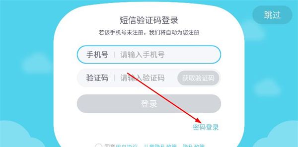 2、在登录页面,选择并点击右下方的密码登录选项。