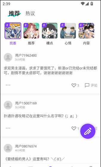 3、在圈子界面下,我们能够参与到漫画聊天过程中去,可以催更作者。