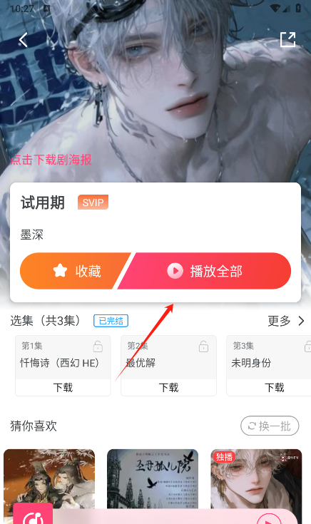 3、点击播放追剧,能够查看当前的收看内容以及购买的剧集。