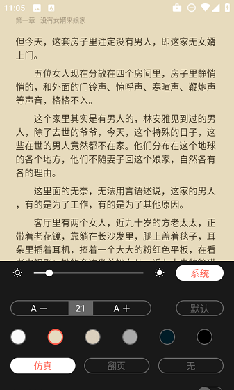 5、在“小说”模式下可自定义字体、亮度与翻页动画,打造舒适体验。