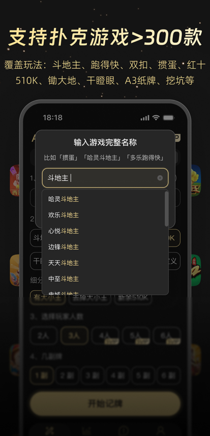 2、支持2-6人玩法,1-6副扑克,适配300+款游戏平台。