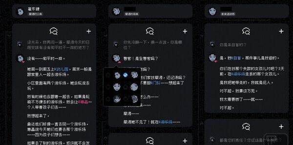 游戏界面设计简洁,以黑白背景为主。主要区域用于展示对话和线索,方便玩家阅读和操作,不会给玩家带来过多的视觉干扰,让玩家能够专注于剧情和推理。