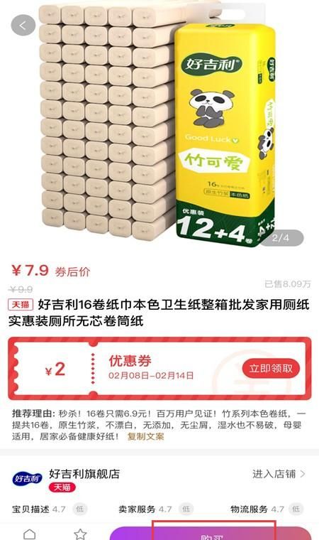 3、可查看其券后价等信息,若想购买,点击底部购买按钮即可跳转至对应电商平台下单。