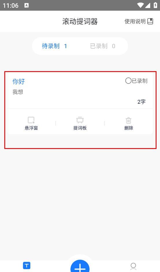 4、保存成功后,回到主界面,可看到添加的剧本,后续可根据需要使用悬浮窗、提词板功能或删除剧本。