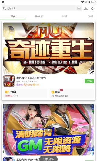3、点击首页中的分类,在这里拥有满VIP版、BT版、GM版游戏供你挑选。