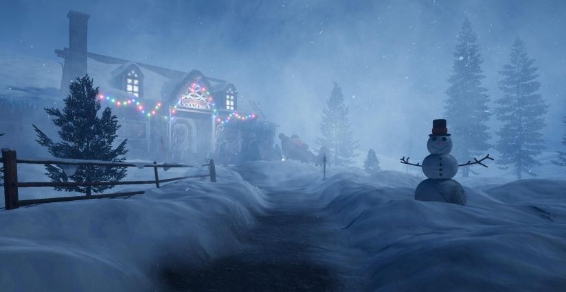 2、噩梦般的节日气氛:探索恐怖的巢穴,血泊中闪烁着欢乐的花环,新年的旋律被扭曲得面目全非,营造出一种独特的焦虑气氛。