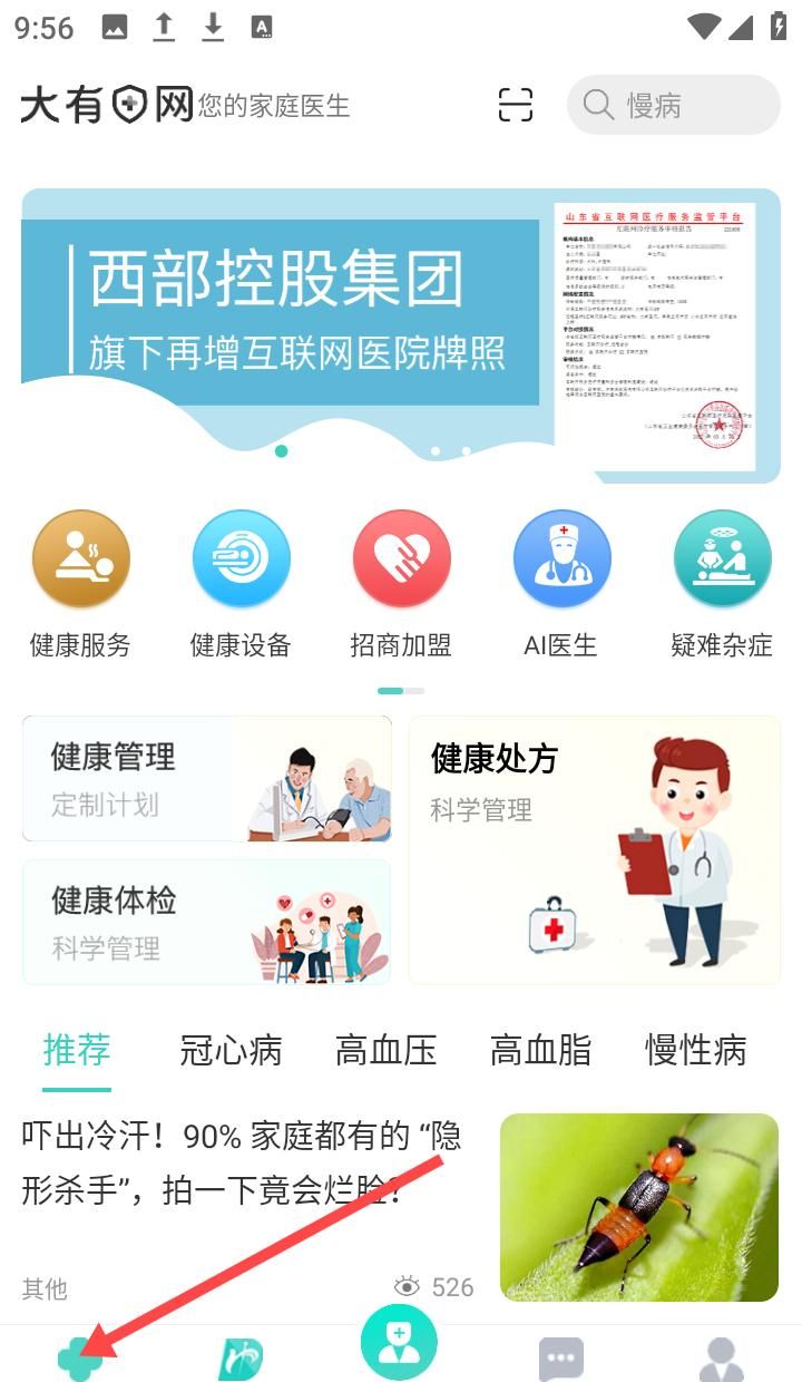 1、主页功能丰富。健康服务和人工智能医生的切入点很突出,也有健康管理和体检模块。下面推送冠心病、慢性病等信息,方便用户获取医疗服务和知识。