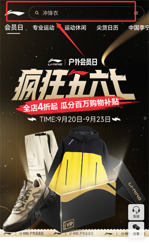 2、返回首页后,在顶部搜索栏输入冲锋衣,查找相关商品信息。