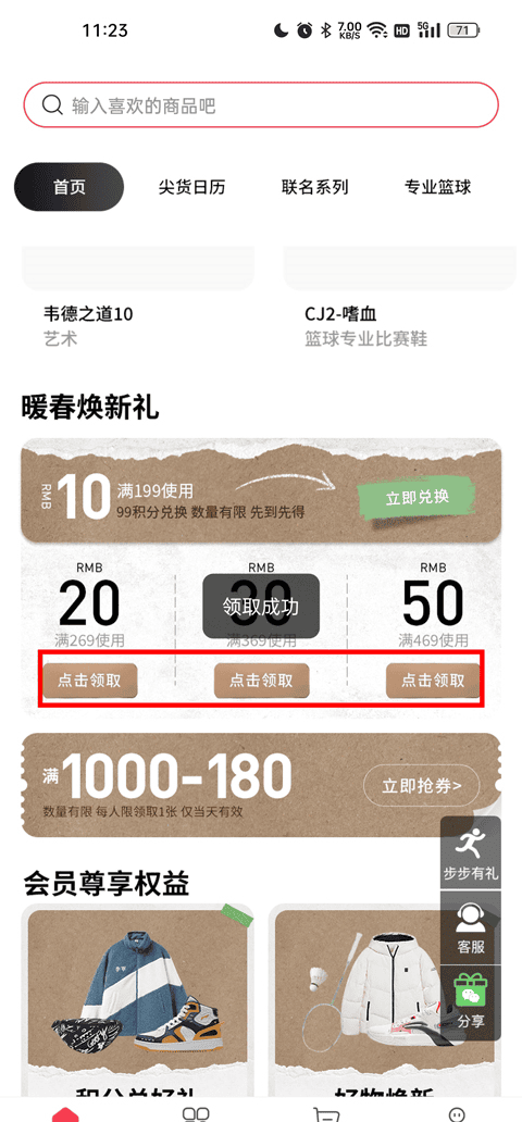 李宁优惠券怎么领取