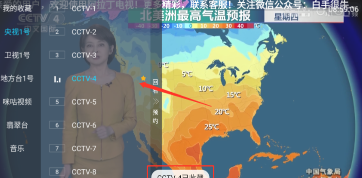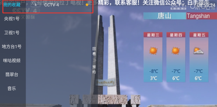 4、点击左上角我的收藏就可以看到收藏的电视频道了。