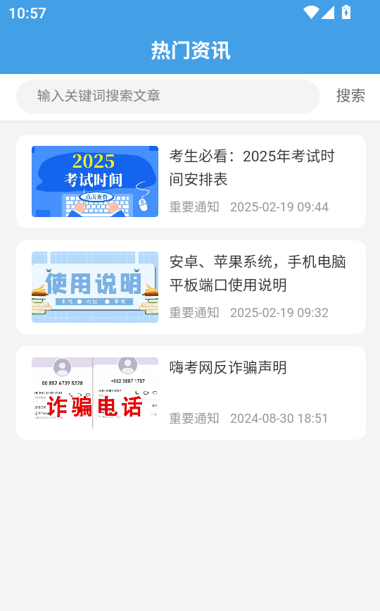嗨考网app如何阅读热门考试资讯的文章详情内容?