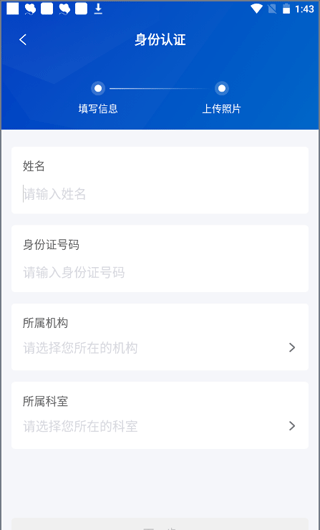 2、输入您的身份证信息和医院信息,然后单击下一步。