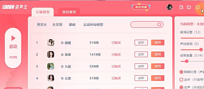 RVC变声器提供了丰富的变声选项,从儿童高音到成年男性低音,用户可以根据自己的需求进行选择。此外,该软件还可以模拟特定名人或虚构人物的声音,让用户在游戏或其他社交活动中更加出彩,RVC变声器软件可以在不同的通信平台上实时切换语音,无论是在游戏还是视频会议中,都可以实时切换语音,从而保证流畅的通信体验。感兴趣的朋友不要错过下载RVC变声器。