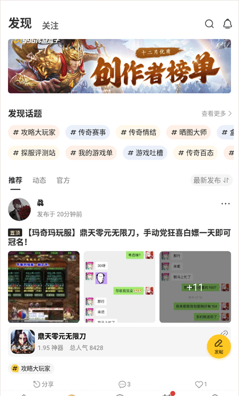 3、游戏内设有话题聚合页面,所有热门话题一网打尽,让你随时参与讨论,分享心得。