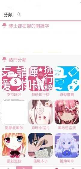 1、下载安装哔咔乐园后,在分类界面点击搜索按钮。