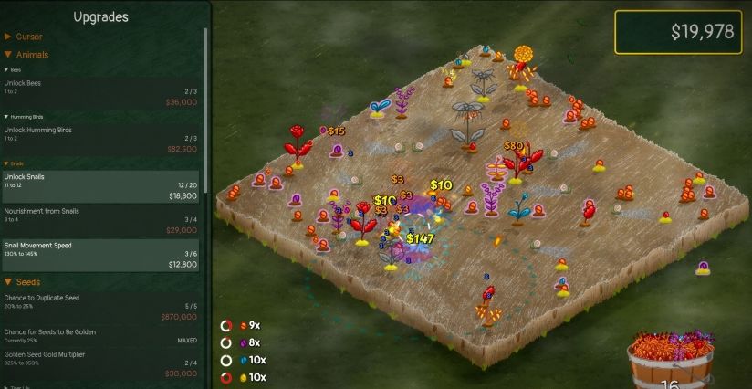 随着花园不断扩展,你不必独自照料每一颗种子。将收益投入高端喷灌系统,或解锁天空之力召唤温柔的雨云,即使不操作鼠标,也能让每朵花顺利绽放。
