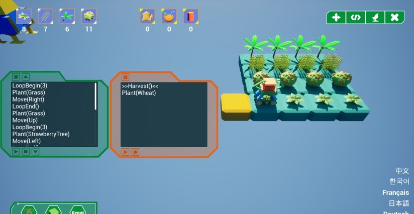 这是一款使用编程的方式进行农场模拟管理的游戏。玩家需要发展经济,升级技术,解锁更高级的指令与资源,应对不确定的各种破坏事件。使玩家感受使用代码与思想控制机器人收割,管理农场的全自动流程。游戏简化了编程的复杂度,提炼了编程的自动化元素。