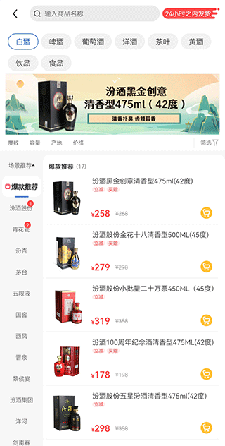 1、打开最新版本的同城酒库应用程序,在主页上搜索要购买的产品。