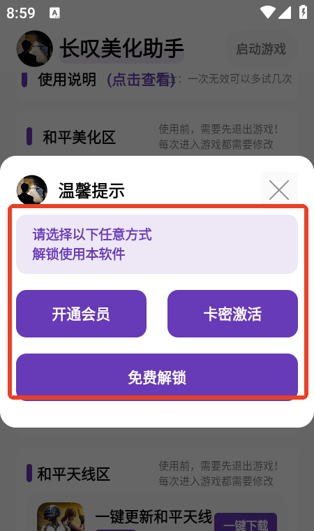 3、选择需要的解锁方式即可在游戏中应用。