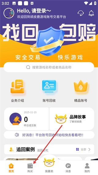 1、点击主页上的“购买”选项,进入游戏选择界面。