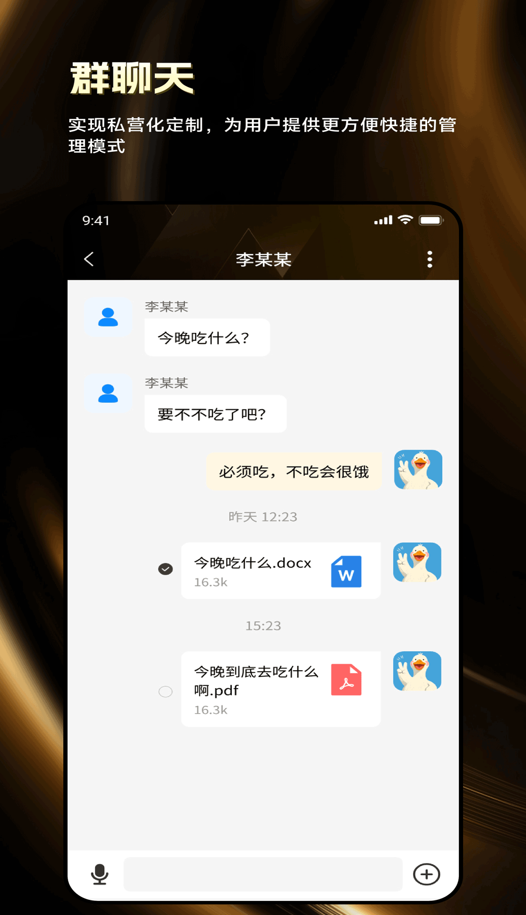 支持群聊私营化定制,满足企业不同部门、不同项目的群聊管理需求,适配多样化办公场景。