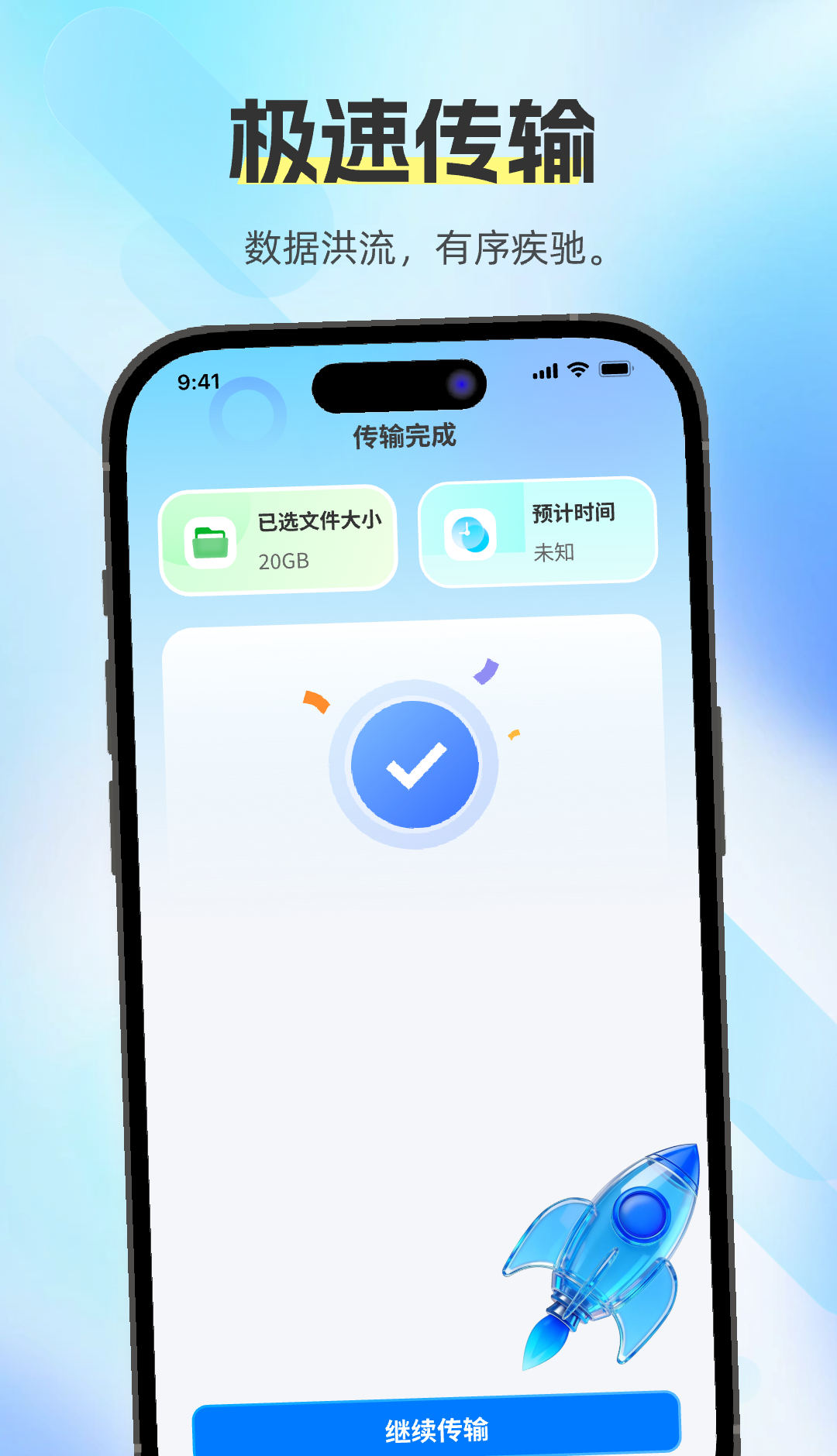 4、传输过程中可实时查看进度条、传输速度与剩余时间,无需守在设备旁等待,传输完成后 APP 会自动提醒,方便用户及时查看迁移结果。