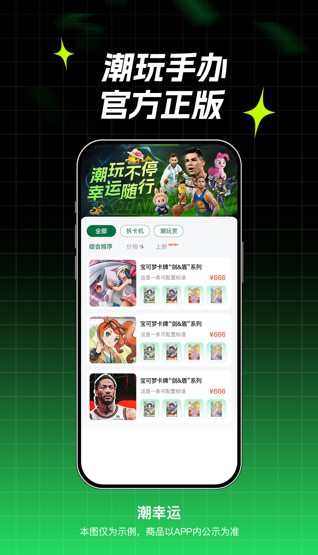 2、潮流 IP 全覆盖汇聚动漫手办球星卡牌等多元潮流品类打造专属潮玩阵地。
