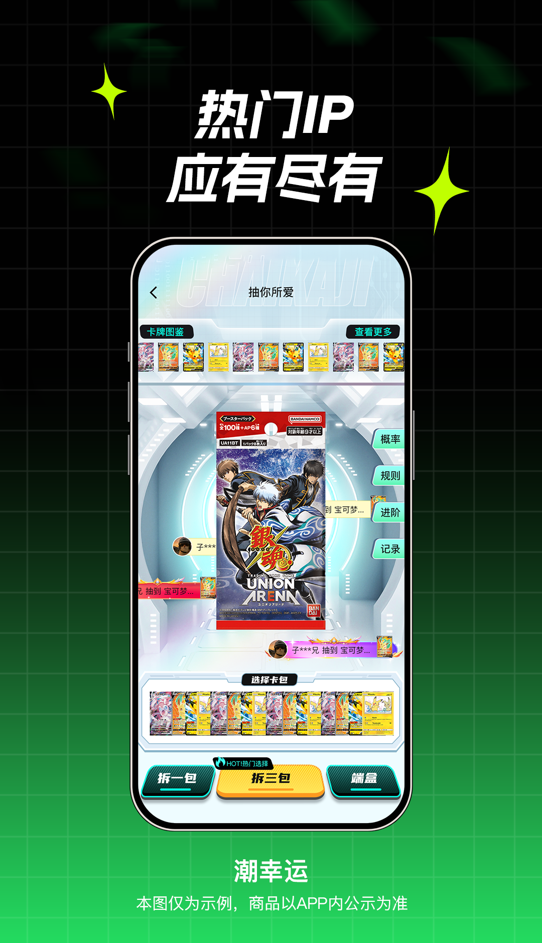 3、热门 IP 集合整合多元潮流 IP 覆盖动漫体育影视等领域满足不同爱好者偏好。
