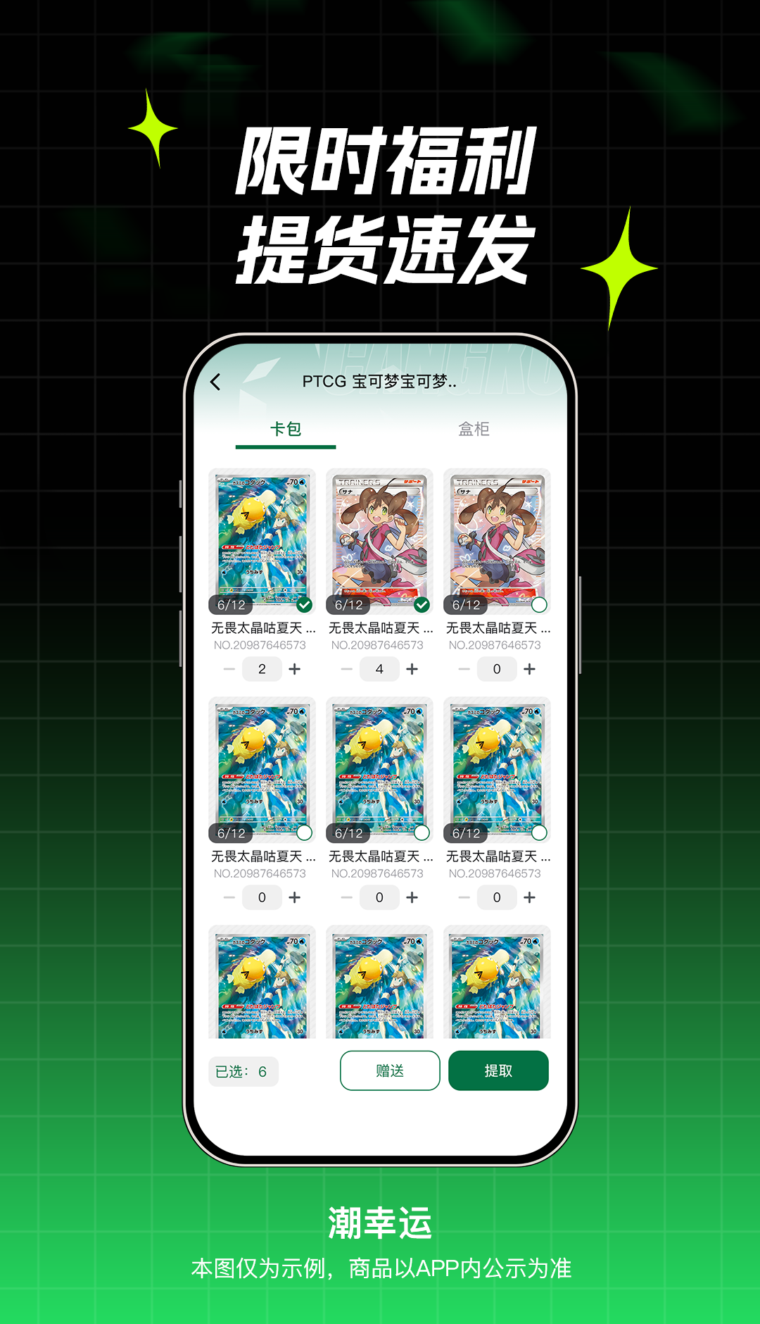 潮幸运是一款专注于潮流文化周边与潮玩收藏的潮流商城应用。专为潮玩爱好者、卡牌收藏者与二次元粉丝打造,汇聚全球热门 IP 正版周边,涵盖宝可梦、球星卡、泡泡玛特、高达等人气潮玩品类。以 “正版保障、专属云仓、极速发货” 为核心服务体系,为潮玩爱好者提供从选购、收藏到交易发货的一站式管理体验,让每一位潮玩家都能在指尖轻松拥有心仪好物,开启专属的潮流收藏之旅。潮玩不停,幸运随行!