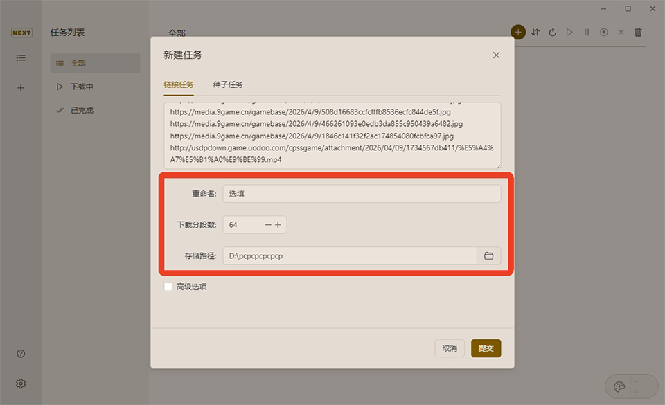文件下载分为【链接任务】和【种子任务】。