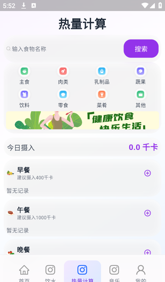 3、精准热量管理:内置海量食物热量数据库,分类检索便捷,可按早中晚加餐记录饮食,清晰掌握每日热量摄入,实现吃动平衡。