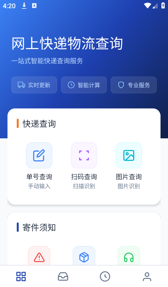 网上快递物流查询是一款专业便捷的快递包裹物流查询工具。支持单号输入、扫码识别、图片查件多种查询方式,一键快速检索全网快递物流信息,实时追踪包裹运输轨迹,轻松管理所有包裹动态。平台可智能预估快递配送时效,精准测算送达时间,方便合理安排寄件与收件计划。同时汇集全面寄件须知攻略,随时查阅寄件规则与注意事项,寄件更省心。操作简单、功能实用,一站式满足查快递、估时效、学寄件等需求,日常收发快递必备随身工具。