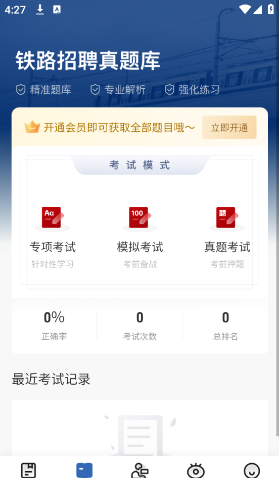 铁路校招真题库app支持用户轻松备考铁路招聘考试,这里最新的题库都可多样化练习,方便用户每日练习巩固,实时进行考点复习,一站式备考需要的考试,便捷在线模考,检验自己的考试成绩,随时查漏补缺,以此来进行高效备考,快速通过自己的考试。
