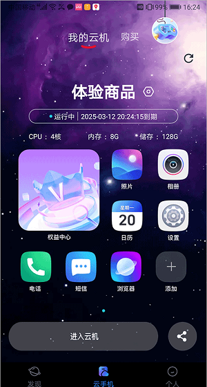 2、然后进入云手机页面中启动云手机。