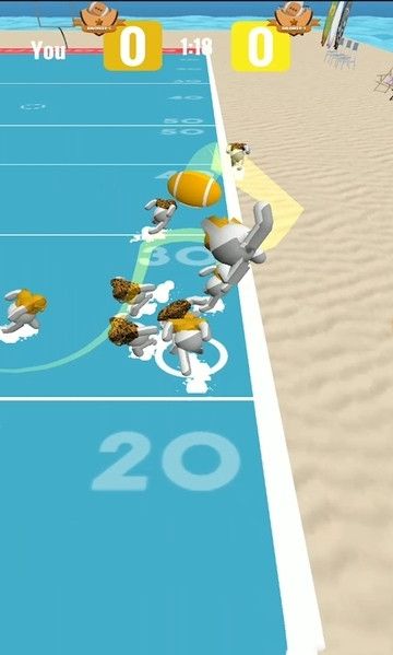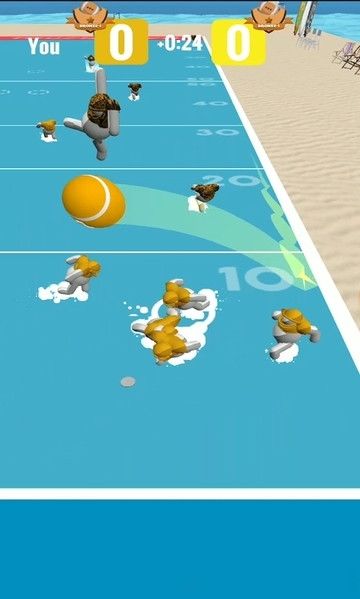 感受海滩环境,体验逼真的橄榄球橄榄球比赛!多变的球员外观,衣服的颜色,以及球的风格!玩更多混乱匹配并解锁一些惊人的功能!