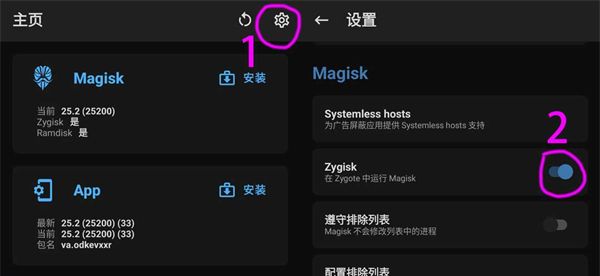 2、打开magisk,如果没有可以在本站搜索下载哦-设置-开启 Zygisk。