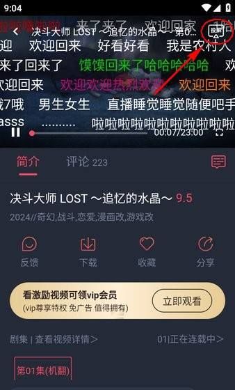2、然后打开动漫共和国,选择要观看的动漫进行播放,播放界面的右上角有个“投屏”按钮,点击一下。