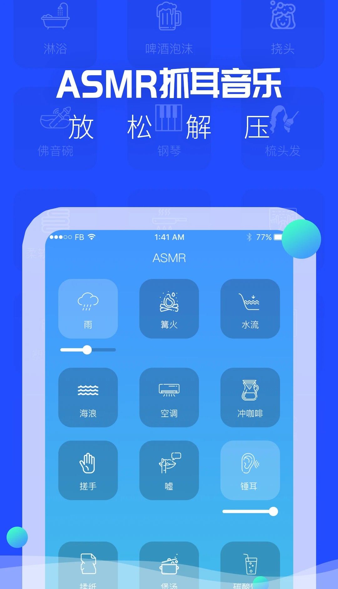 ASMR是一款非常好用的助眠音乐播放软件,拥有个性化的音乐界面设计,可以让用户轻松获取热门的助眠音乐资源,随时随地在线播放感兴趣的助眠音乐,自由享受便携的服务和体验,还具有丰富的功能选项,无需任何经验即可上手使用,自由浏览最新的助眠音乐榜单和类型,轻松呈现很多高人气的助眠音乐,给用户带来全面的解压助眠乐趣,还提供在线下载功能,允许用户直接下载各种助眠音乐来听,有兴趣的用户欢迎来本站下载软件。