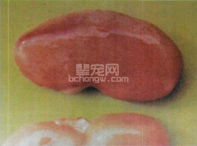 病猪症状随年龄的不同而有差别,但都无局部奇痒现象。妊娠母猪感染常发生流产、死产及延迟分娩,产下胎儿的个体大小相差不大,无畸形,有部分胎儿出现软化(图7-1),剖检胎儿可见肾及心肌有出血点,肝有坏死点(图7-2)。母猪可产下弱仔,但多数不久即死亡。母猪在产前产后没有明显症状。
