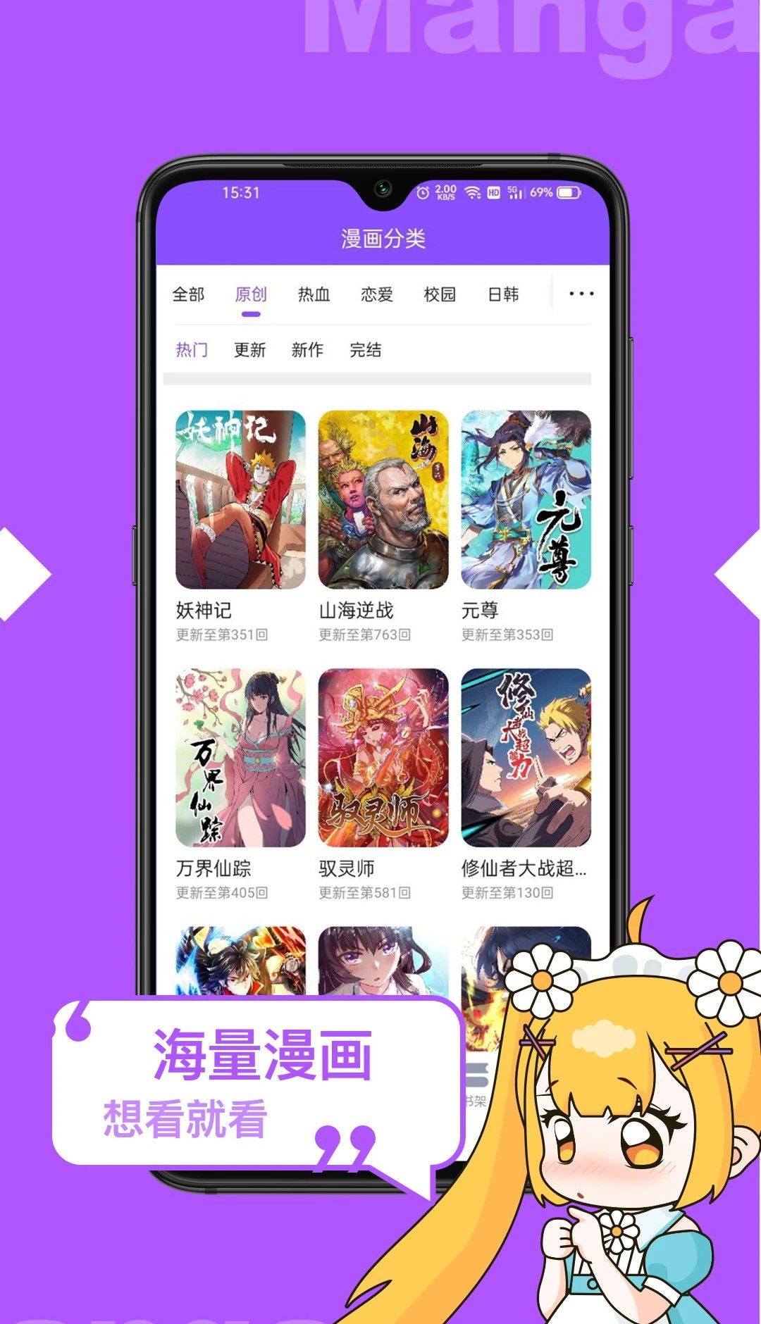 1、包括各种类型的漫画,如浪漫、热血漫画。