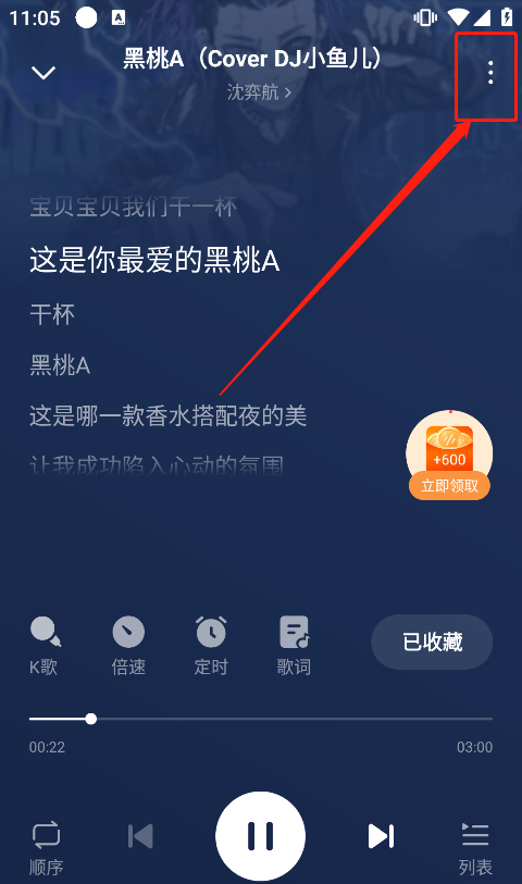 2、进入音乐详细界面,点击右上方“更多”即可点击下载