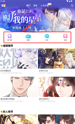 4、用户可以尽快获得新的漫画。每天编辑精心策划的推荐后,用户可以轻松浏览它们。