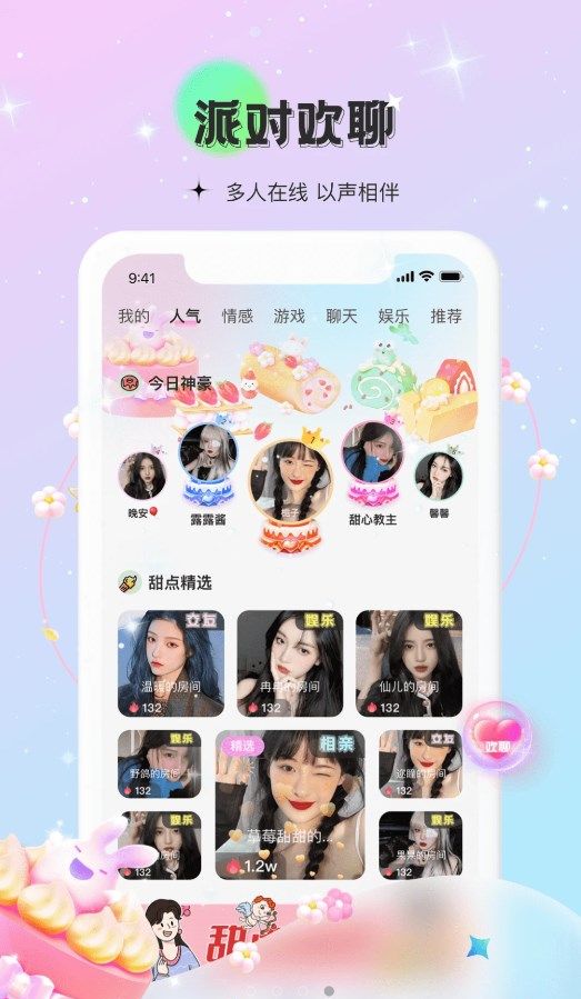 甜品语音是一个非常有用的软件。软件的用户非常多,用户基数非常大。无论用户有什么样的审美偏好,他们都可以很容易地在这个软件中找到他们感兴趣的异性对象,以满足他们交朋友的目的。